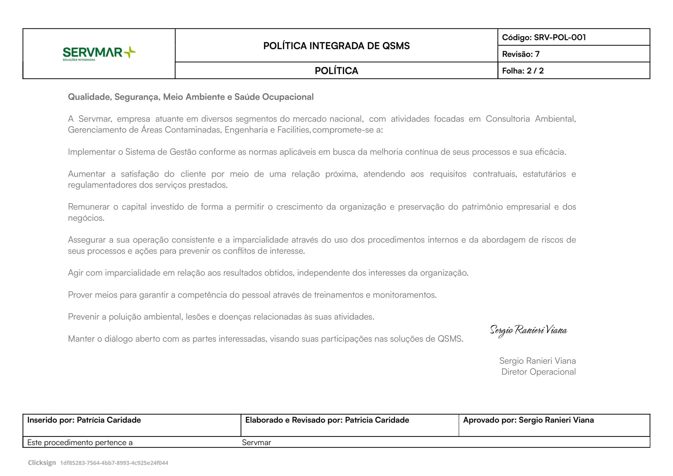 A solidez institucional da Servmar está fundamentada em uma governança robusta e transparente que permeia todas as nossas operações. Nossa reputação foi construída sobre pilares inabaláveis de integridade, ética e responsabilidade corporativa, valores que orientam cada decisão e interação em nossa organização, garantindo segurança e confiabilidade para todos os nossos stakeholders.
